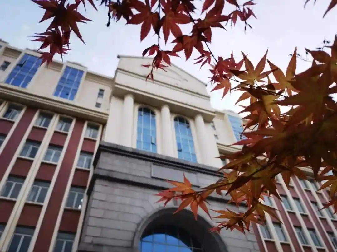 复旦大学上海医学院的校园里,秋染古韵楼,红叶衬静美。