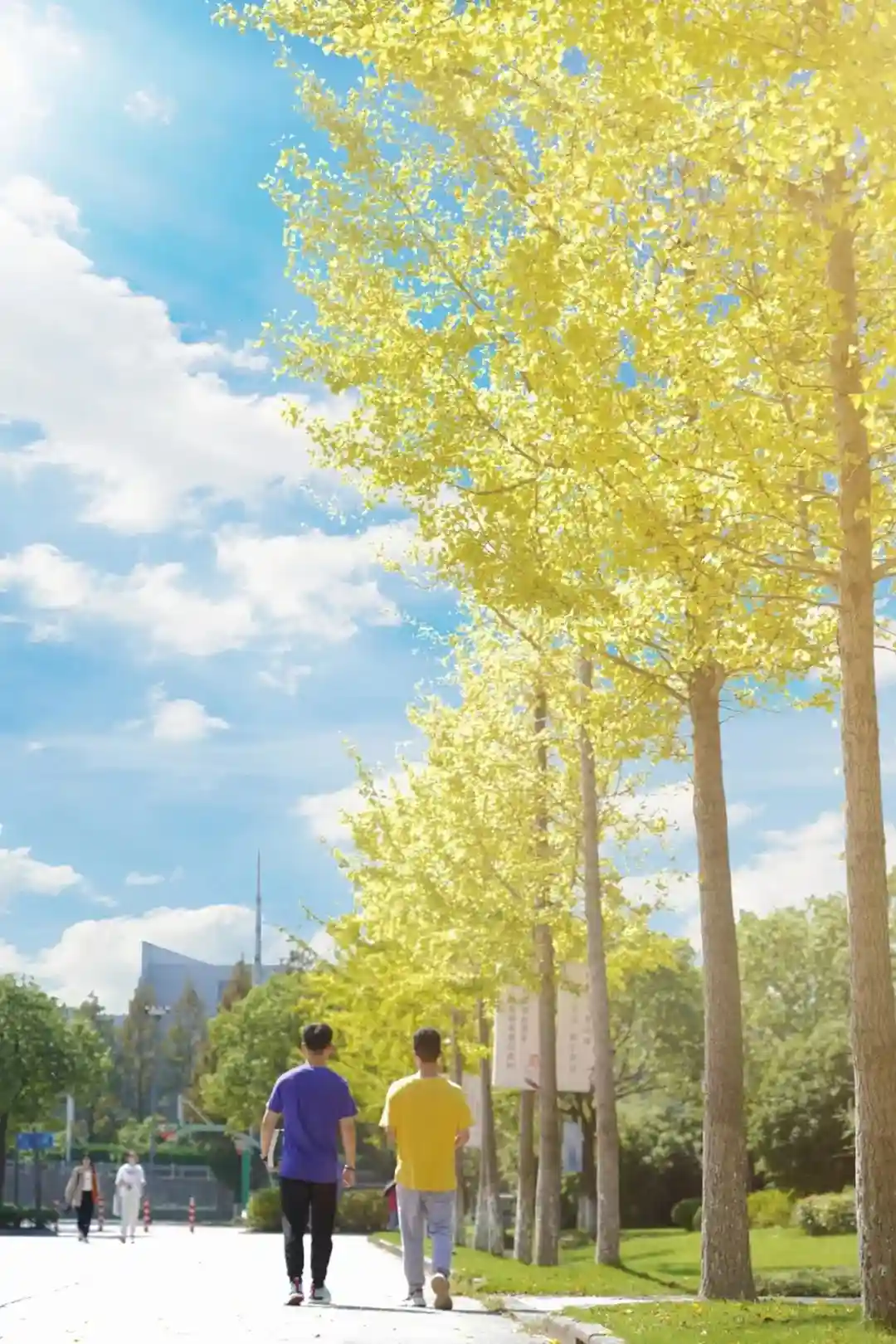 上海城建职业学院的校园里,秋风轻拂,银杏美如画。