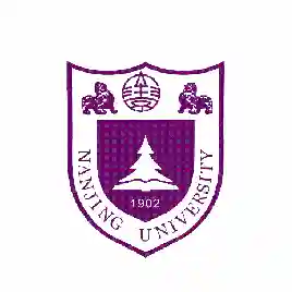 校徽外形采用盾形的设计风格,该风格为中央大学时期所流传下来。校徽的左下方及右下方为英文“NANJINGUNIVERSITY”。南大校徽确定了特定色值的紫色为标准色,并将其命名为南大紫。