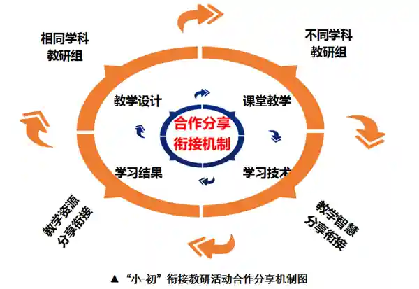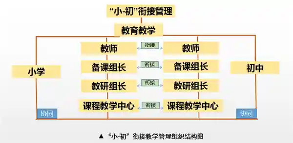 根据实际,学校搭建出九年一贯制学校“小-初”衔接教研建设基本框架,建立了学习型组织;明确职责,确立规范,创设小初衔接的教学活动整合和保障机制,形成了“小-初”教研组共同愿景;同时建立和完善教师专业发展机制,以促进教师自主发展、充分发展;修订教研组管理制度,明确相关职责;构建教研组常规建设机制,明确教研组研究目标和内容,找准衔接关键点;确定衔接教研要求,创设“小-初”衔接教学活动的运行机制,包括课程建设、教学质量、教师专业能力发展等,实施教研活动主题引领、合作分享和研究反思机制;针对“小-初”教研组特质确定教学资源建设的衔接保障。建立以“合格-升格-风格”为目标的课堂研究与专题实验联动机制,多平台、多渠道打造教师专业发展通道。