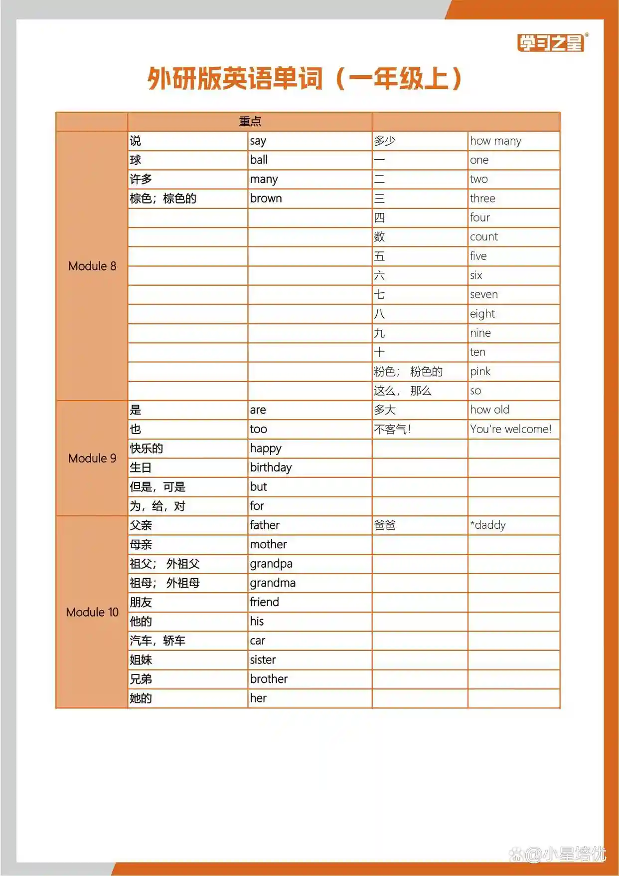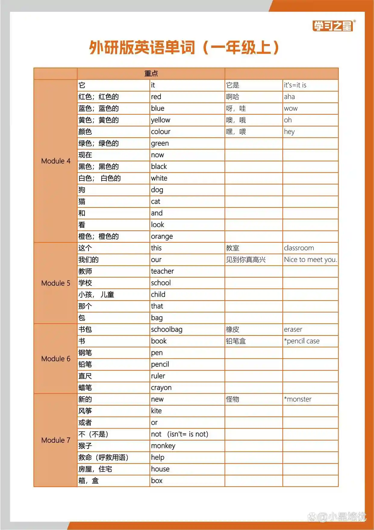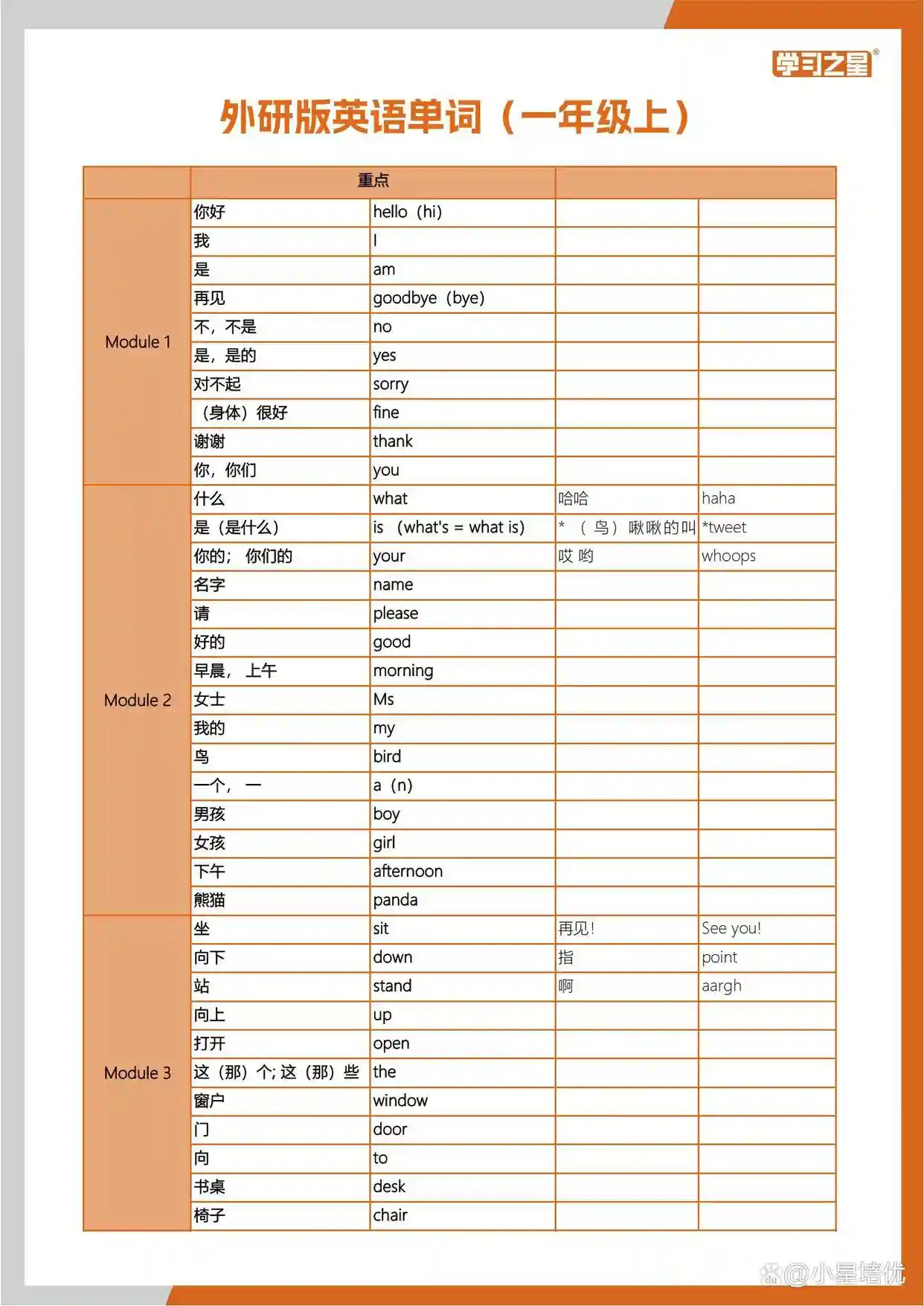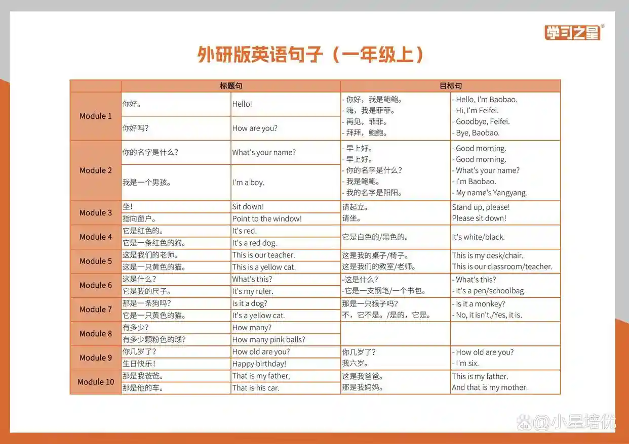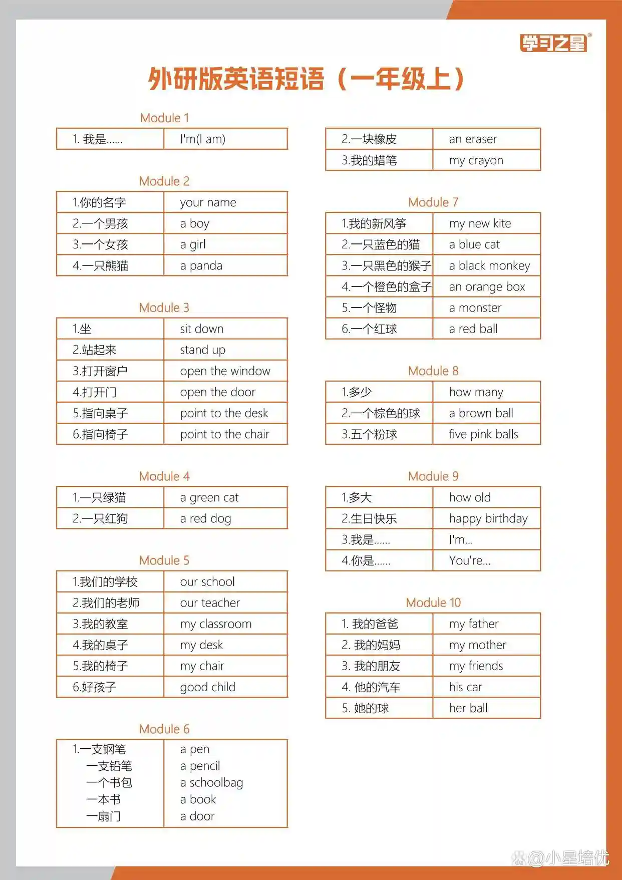 今天为正在上小学的同学们分享一份外研版一年级小学英语单词、短语、句子。