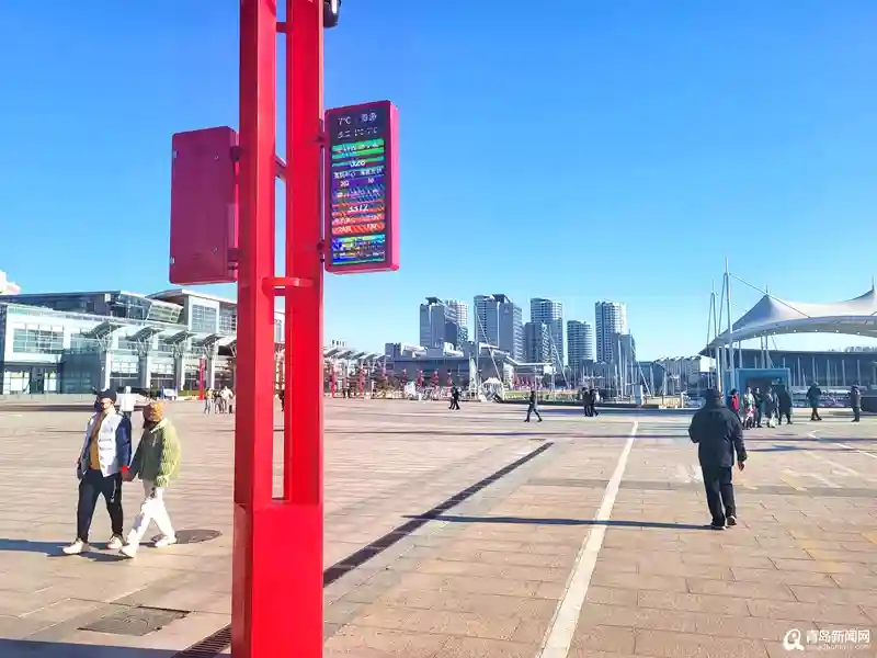 全新改造完善的奥帆海洋文化旅游区导游指示牌、方向标,都以统一的淡蓝色为主,边角点缀着卷曲的蓝色浪花,突出海洋特色。红色的电子显示屏上,显示着温度、天气以及实时的入园游客数量,小巧别致的显示屏与小麦岛公园等地的大显示屏又有不同,呈现小巧而分散的布局。在奥帆中心里,基本一百米左右,就能看到相关的服务提示信息,让整个奥帆中心显得更加方便贴心。