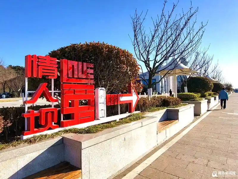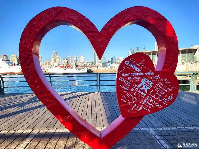 情人坝同样是来到奥帆中心的游客必打卡的景点。这里不仅增加了地面的彩色标语,更有多处红色的爱心以及“我爱青岛”等网红打卡地标,在这合影留念的游客、情侣在旺季时甚至都要排队。登上情人坝,简单有趣的“我爱青岛”标志是机械风格,颜色更是鲜艳亮丽,正好与碧海蓝天交相辉映。