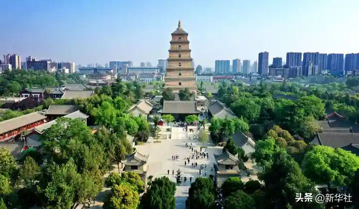 这是2023年4月19日拍摄的西安大雁塔(无人机照片)。2014年6月,由中国、哈萨克斯坦和吉尔吉斯斯坦三国联合申报的“丝绸之路:长安-天山廊道的路网”成功列入《世界遗产名录》,成为世界上第一个以联合申报的形式成功列入世界遗产名录的丝绸之路项目,也是联合国教科文组织确定的丝绸之路54个廊道中第一个成功申遗的项目。新华社记者刘潇摄