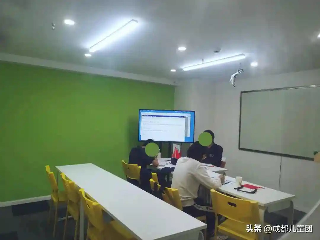 在孩子上课期间,家长们也在外面的休息区学习或处理自己的工作