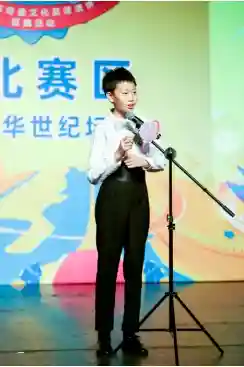 获得华北选区高年级组冠军的选手是一位玉树临风的小少年,他叫段骏弛,不仅像一个演讲家、也像是个音乐家、更是个小绅士,以地道的英式发音、流利的口语对话征服评委们的心。在才艺表演环节,他以萨克斯演奏《我和我的祖国》作为向祖国母亲70周年生辰送出的献礼,也将比赛氛围带到了高潮。