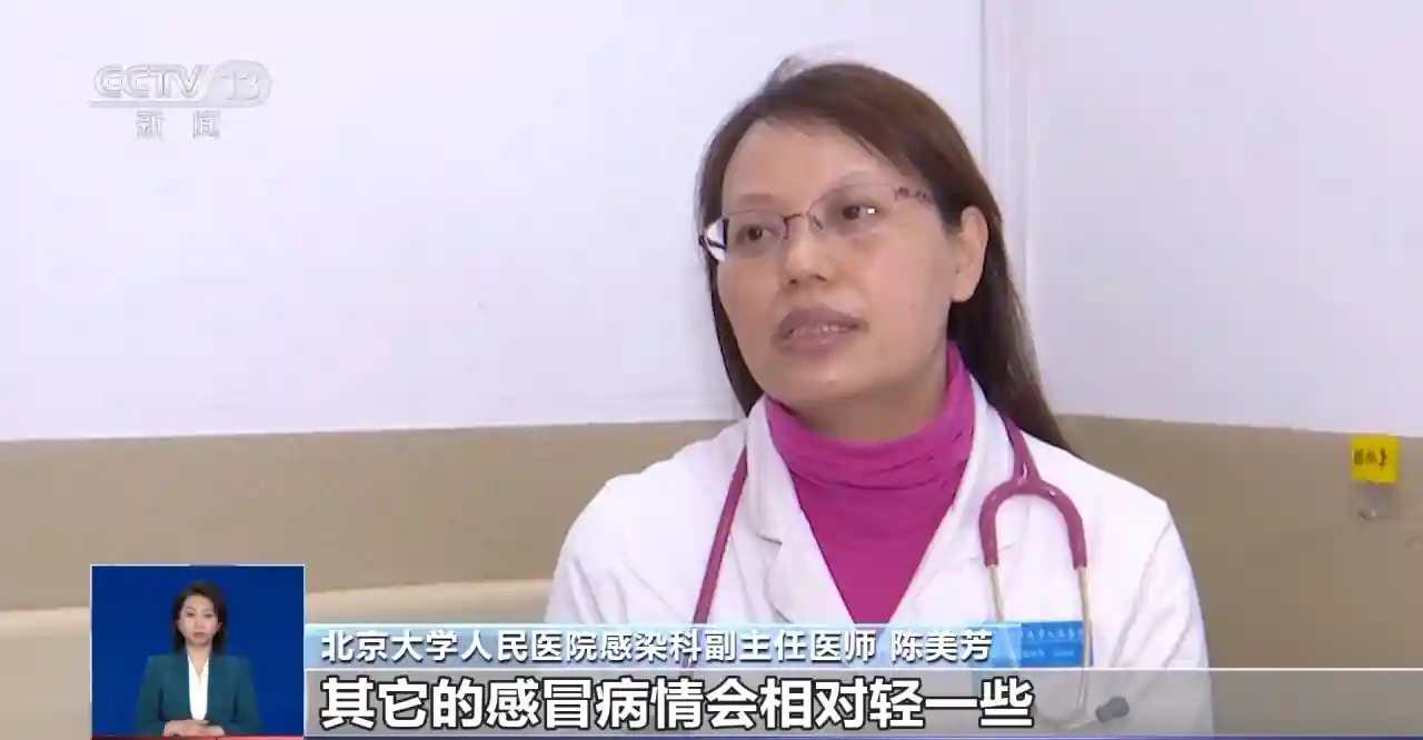 北京大学人民医院感染科副主任医师陈美芳:其他的感冒病情会相对轻一些,体温一般来说可能在37℃到38℃,不会特别高热,而且来势不会那么快。它的症状是以上呼吸道症状为主,包括比如说流鼻涕、鼻塞、打喷嚏为主要,也有咽痛、咳嗽。