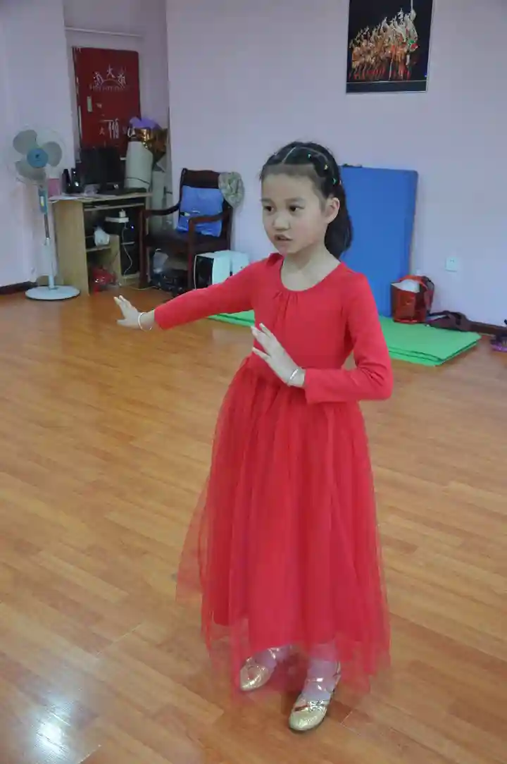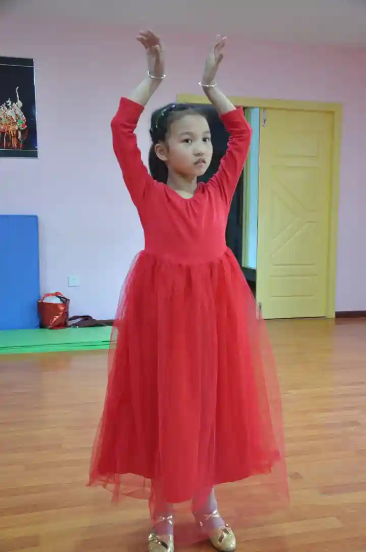 “紧张吗?”“紧张。”小珈慧的回答不假思索,低下头有些害羞。为了准备这次的活动,小珈慧每周会多练习一些时间,平常她总是在周六上午10点开始,跟着德艺琴行的老师练习一个小时的舞蹈。穿上红色的舞蹈裙,再换上一双迷你的金黄色高跟鞋,原本就漂亮的小珈慧愈发漂亮了。对着镜中的自己,每一次举手、踏步和造型,小珈慧都练得十二分认真,有时候还会吸引隔壁几个学琴的小朋友挤在门口,自发当起了临时的小观众。