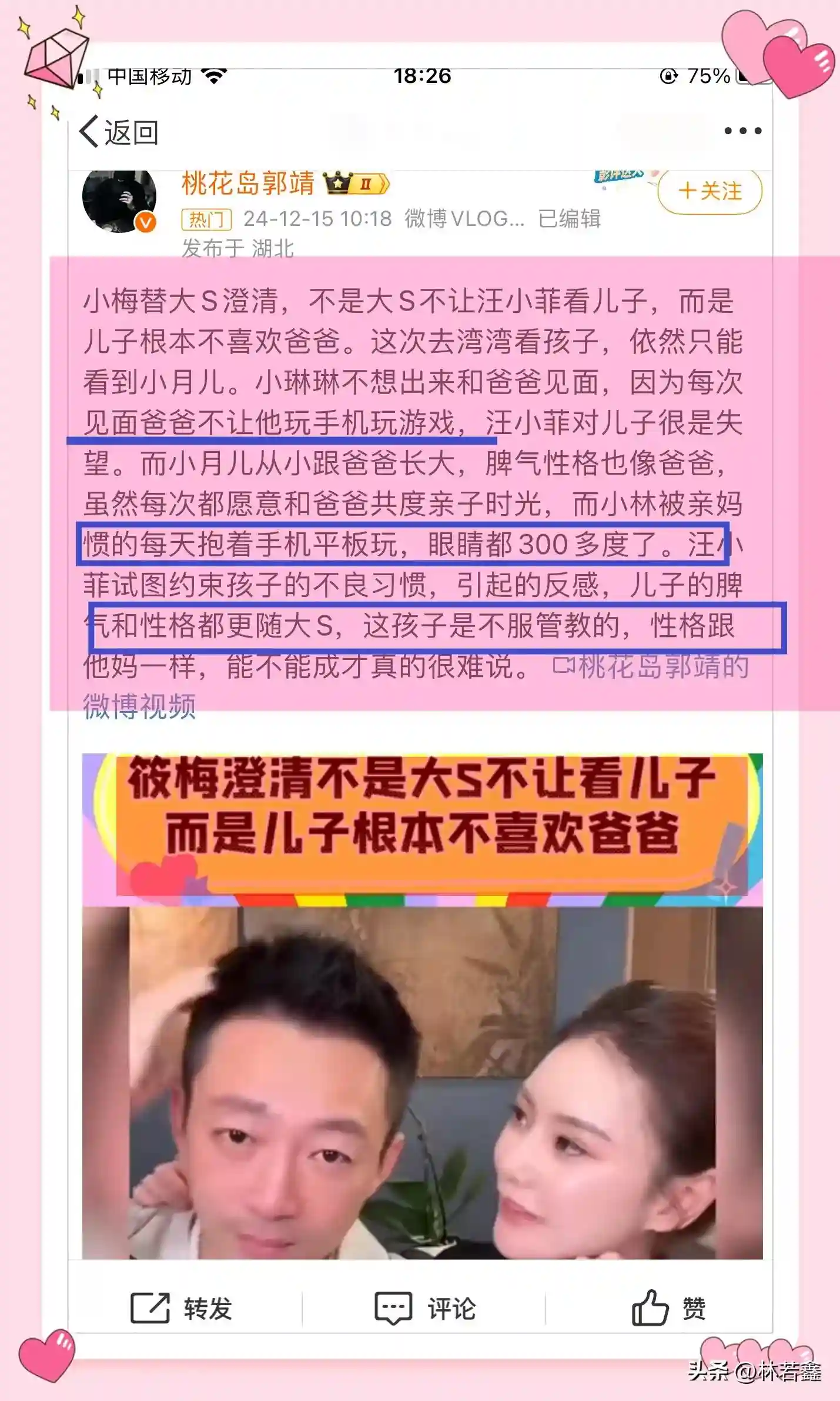 话说小s的大女儿在国外上名牌大学,二女儿雅思分数又这么高,而且长的又好,小s教育孩子的方式比大s强多了,前几天网友听到马筱梅跟张兰说小箖箖因为汪小菲不让玩平板,所以不愿意见汪小菲,见了就哭,而且眼镜还近视,网友说女儿驼背,儿子近视,大曲线真的是一点不操心,之前小s还说姐姐家的孩子不会叫人,有点没礼貌,来人不打招呼,大s还说他们是独立的个体,不要管他们,