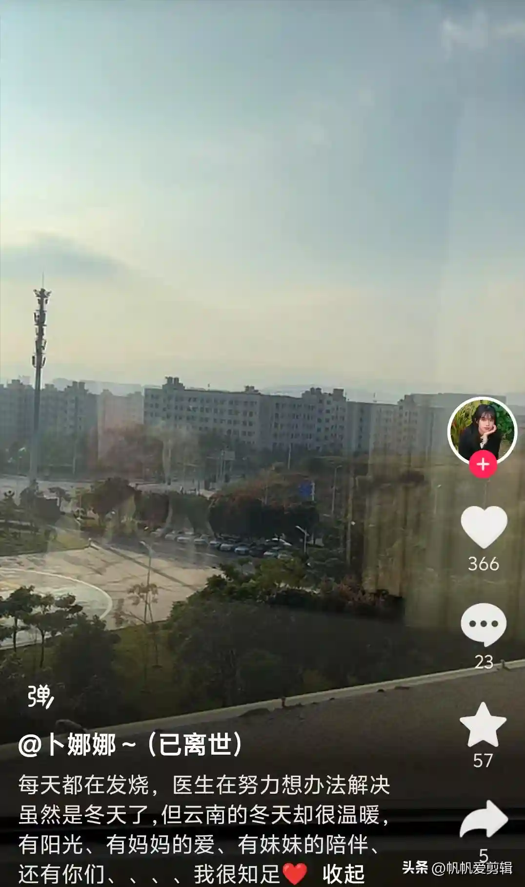 11月18日,她发布了最后一条动态,简单却充满温情:“虽然是冬天了,但云南的冬天却很温暖,有阳光,有妈妈的爱,有妹妹的陪伴,还有你们,我很知足。”这句话仿佛在向所有关心她的人道别,同时也传递出她对生活的感激与最后的告别。