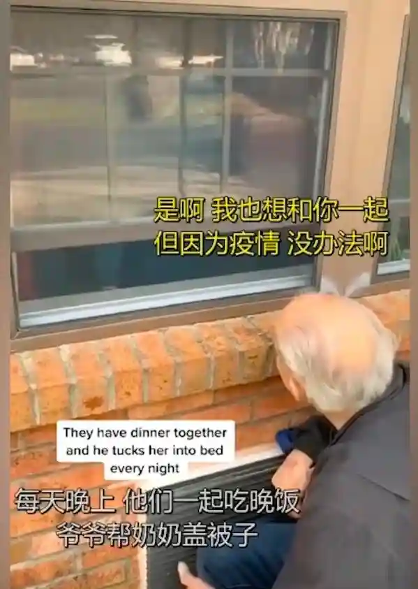因为疫情,网友Alicia的爷爷已经一年多没有和住在护理中心的奶奶见面了,但他每天都会来到奶奶的窗前,通过和她聊天的方式来陪伴她。