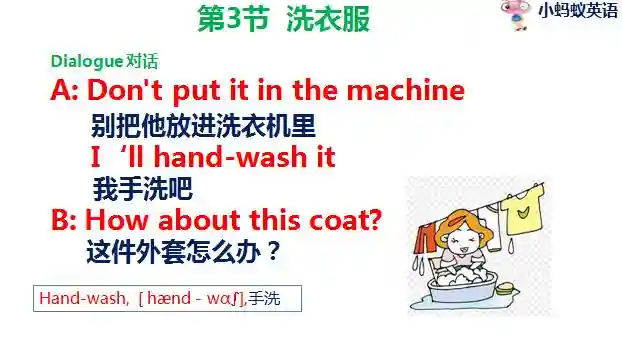 A:Don''llhand-washit.别把他放进洗衣机里,我手洗它吧