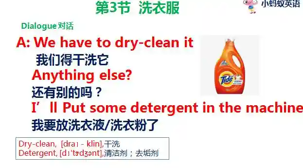 Anythingelse?I'llPutsomedetergentinthemachine.还有别的吗?我要放洗衣液/洗衣粉了
