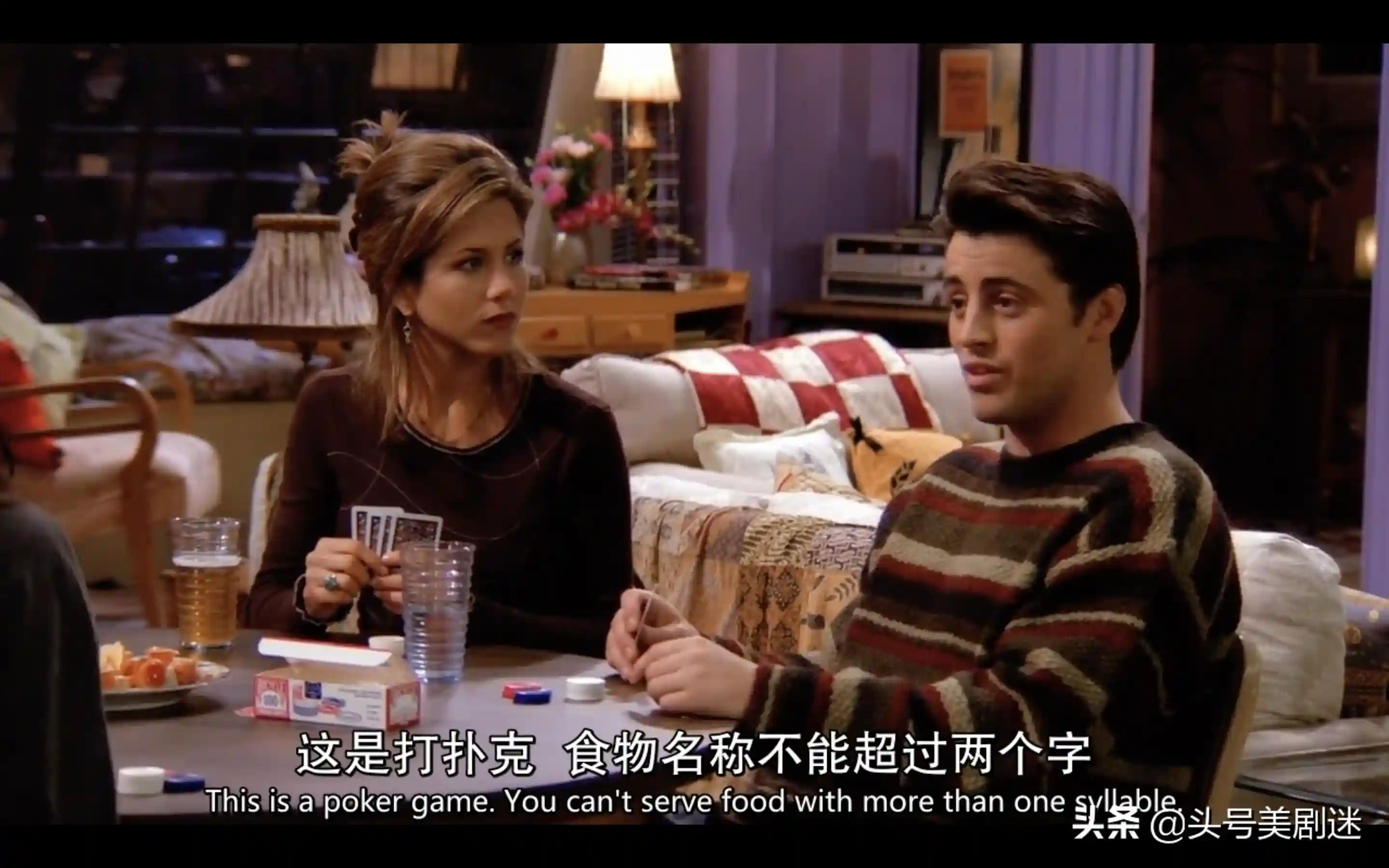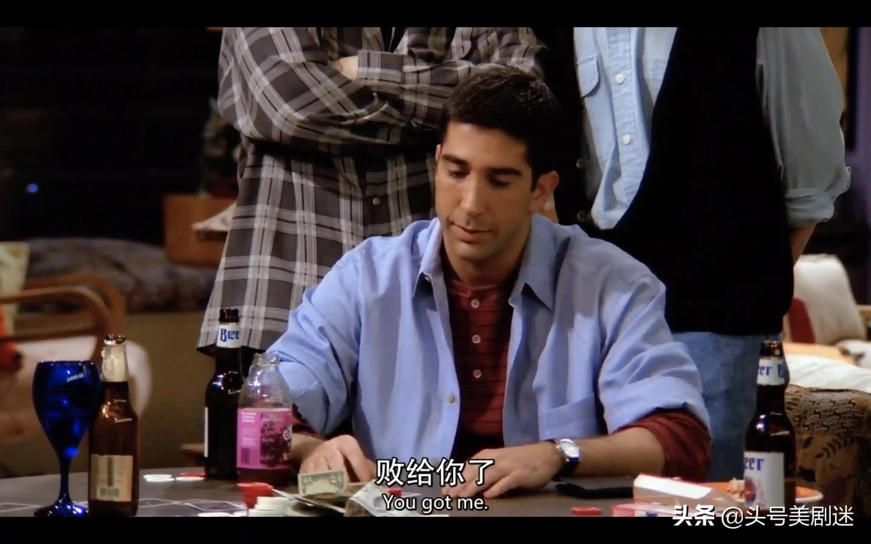 第一季第18集,TheOnewithAllthePoker,男生们打牌把女生们杀得片甲不留,最后一局ross却输给了rachel。