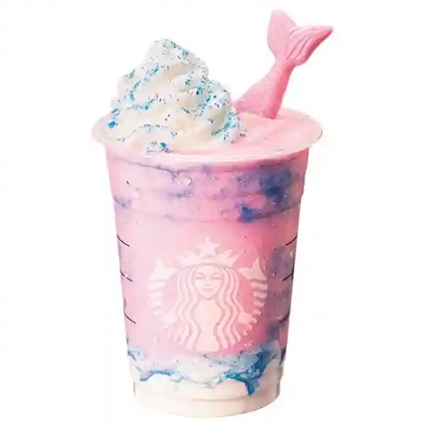 其中,一款美人鱼星冰乐成为了网红。这款名为“魔幻美人鱼星冰乐”的饮品洋溢着柔美的粉色和清爽的蓝色,甘甜火龙果搭配细腻蓝莓粉呈现出海滩落日般的梦幻色调,而芒果酱和鲜奶油的加入则将饮品的甜蜜滋味和延绵口感提升不少。而点缀在星冰乐上的粉色巧克力美人鱼为这款饮品带来了画龙点睛的效果,一头栽进冰凉中的造型让人看着都凉爽不少。