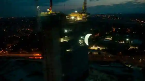 一弯新月将升起在西班牙马德里Caleido塔上。