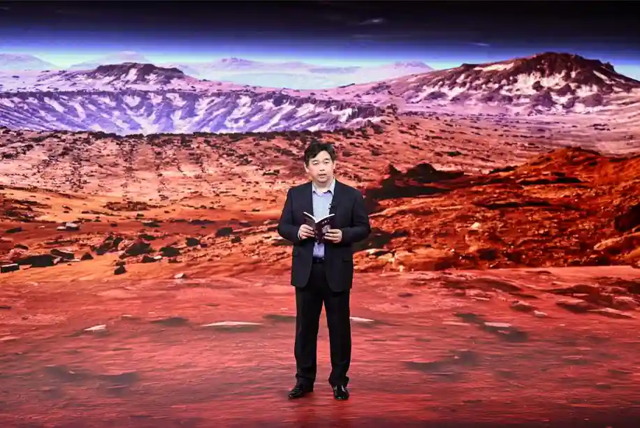 我认为讲好科学故事和讲好传统故事,还不是一回事。比如说录制现场这张背景照片,是“天问一号”获得的珍贵影像。很可能我们会是世界上最早把人送上火星,然后再带回来的国家。到那时,这就是中国故事的背景。所以我不觉得中国故事一定要从古代去寻找,当代的中国人正在创造历史上前所未有的辉煌,更应该用科幻来讲好当代人的故事。
