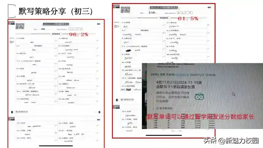 随后,参与此次联备活动的四所学校,各自选派教师代表就本校在英语默写方式上的实践探索与宝贵经验进行了深入分享。他们通过精彩纷呈、各具特色的展示形式,全方位地展现了各校英语备课组在默写策略的精心谋划与实践应用中所取得的显著成效。