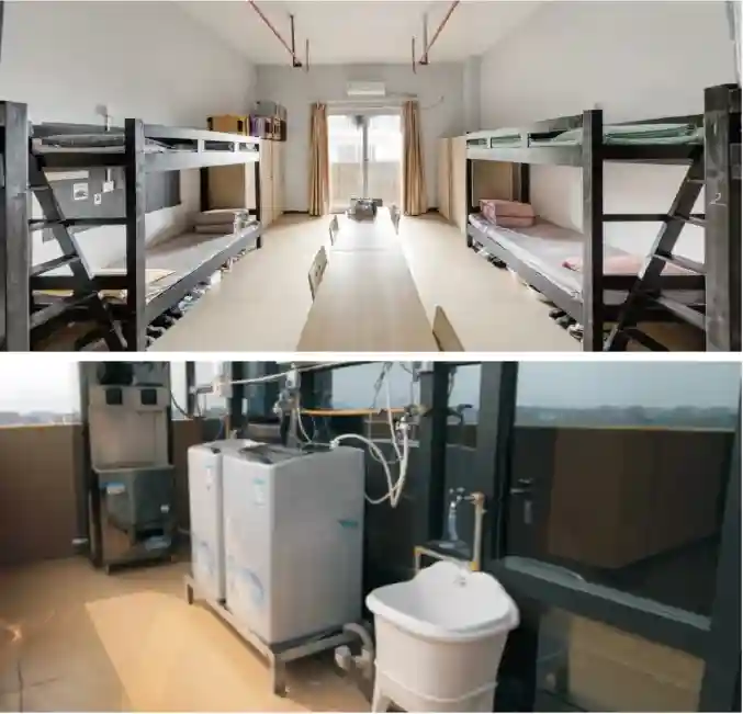 学生寝室舒适温馨,空调、热水器、独立卫生间、洗衣房和热水房等生活设施完备,是学生学习生活的理想场所。