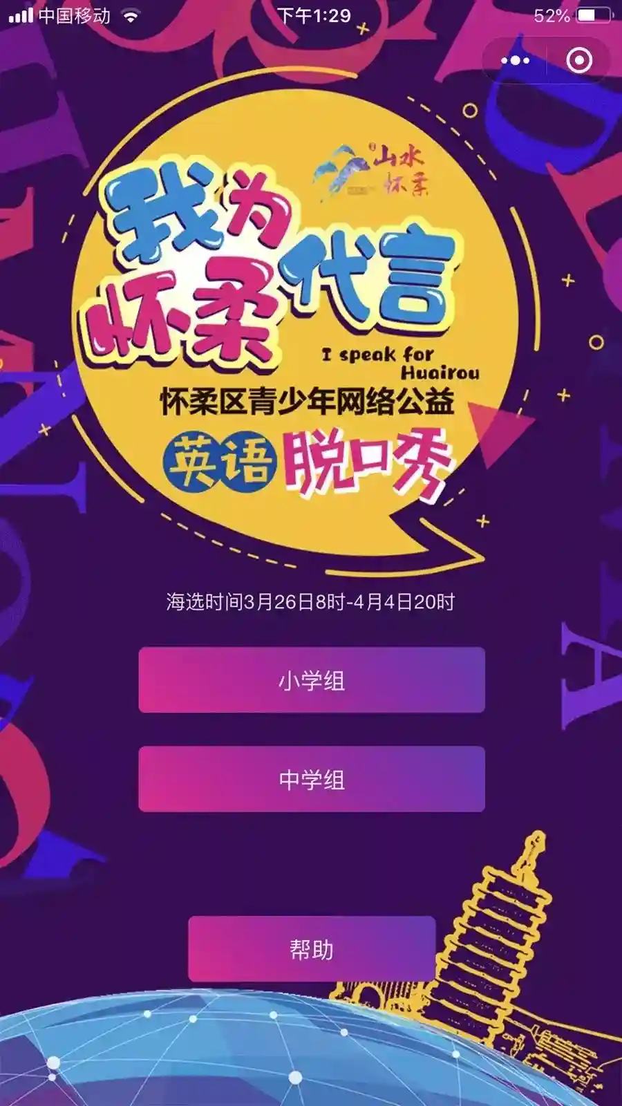 怀柔区青少年网络公益英语脱口秀。