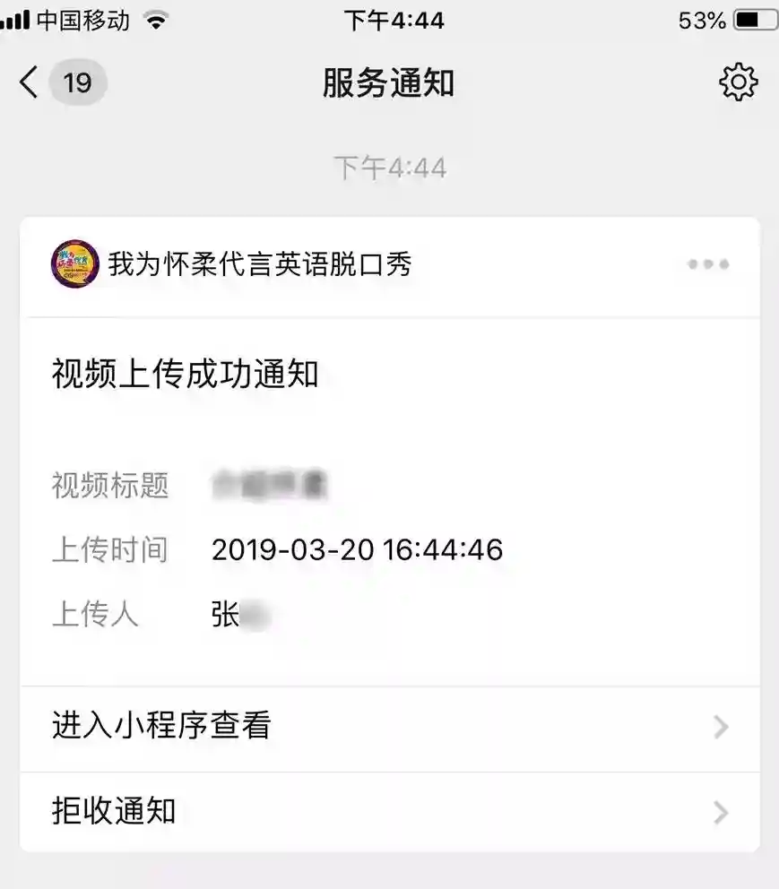 4上传成功后会收到一条服务通知,上传成功