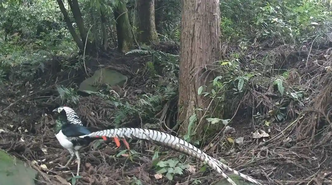 在邛崃天台山的生态质量样地附近,通过红外相机拍摄记录到的白腹锦鸡·雄性(国家二级重点保护野生动物)