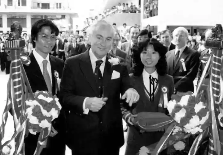 1980年,沈弼在香港油塘湾为第250家汇丰分行开张剪彩。