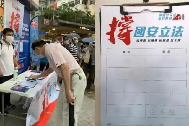 王冬胜姗姗来迟在“撑国安立法”街站签名